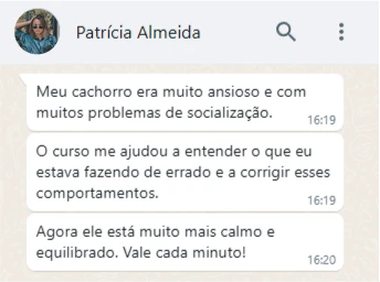 Nosso curso vai muito além da teoria, oferecendo orientação e suporte prático em cada etapa para garantir que você tenha confiança e segurança em cada passo do processo. Seja qual for a raça, idade ou temperamento do seu cão, você verá resultados reais desde as primeiras aulas!